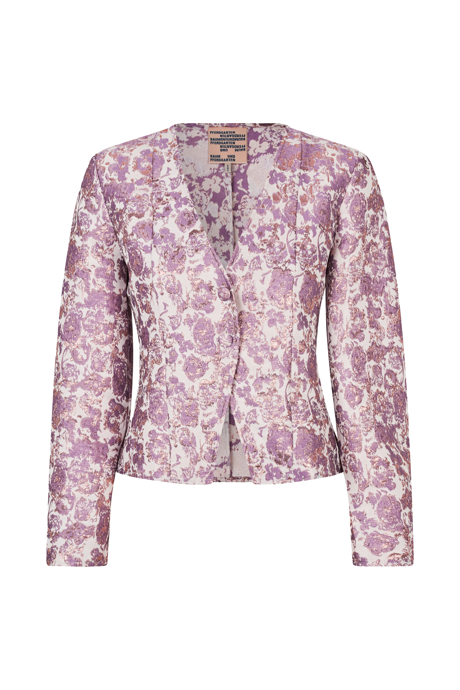 The Millie top by Baum Und Pferdgarten is an elegant V-neck top with voluminous sleeves, designed with a slightly flared front opening that adds movement to the design. Crafted from a fabric that combines recycled polyester, metallic fibers, and elastane, it offers style and sustainability.