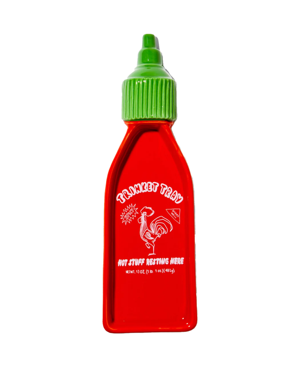 This ceramic tray shaped like a sriracha bottle pays homage to the vibrant packaging of the 1960s and 1970s. Its nostalgic design evokes memories of classic corner stores and beloved flavors of yesteryear, adding a charming, retro touch to your table or kitchen.