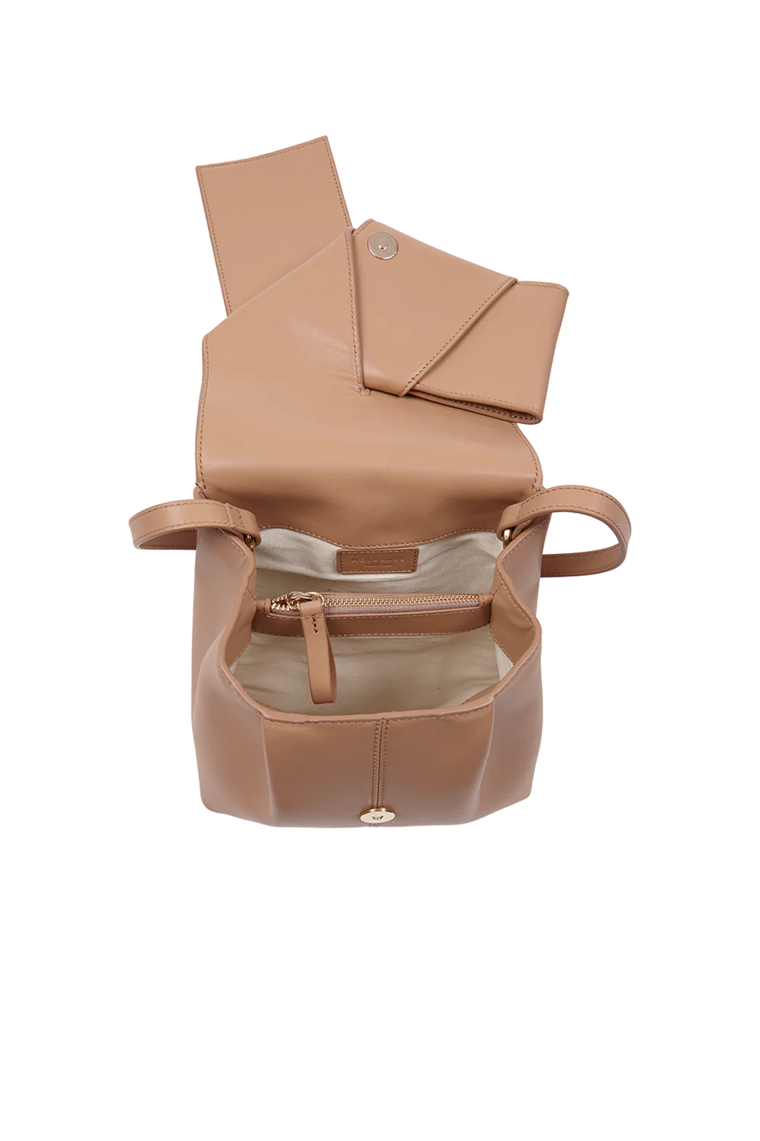 Made in Spain from calfskin, this bag stands out for its spherical design and flat base, giving it a distinctive and natural elegance. Its versatility lies in the ability to easily switch between the removable top handle and the detachable strap, allowing it to be carried as a chic handbag or comfortably over the shoulder. A sophisticated and practical accessory for any occasion.