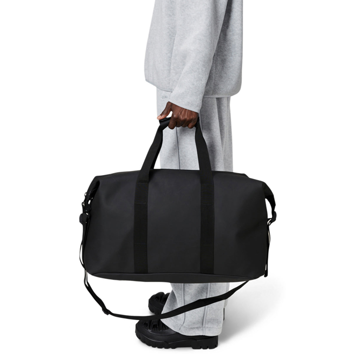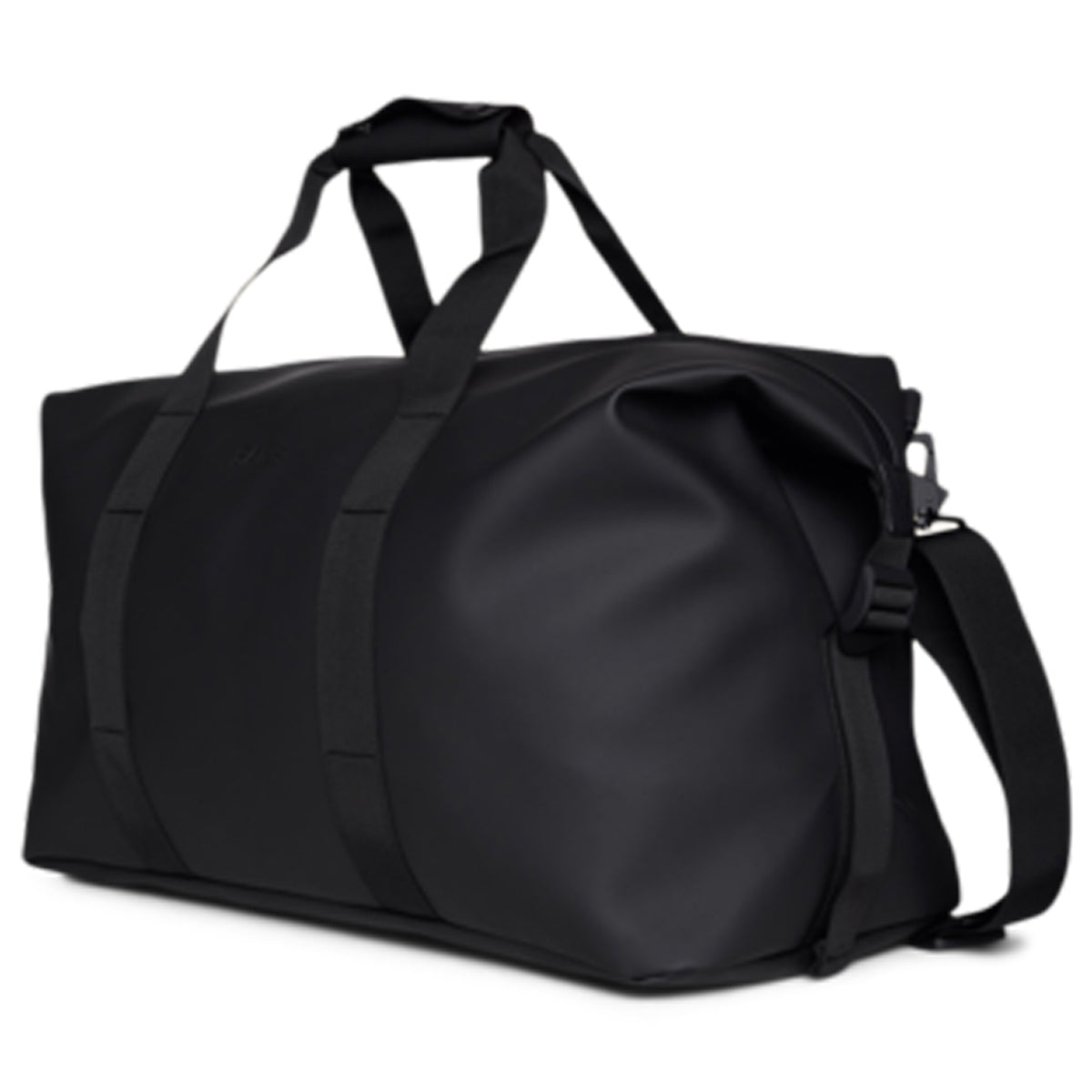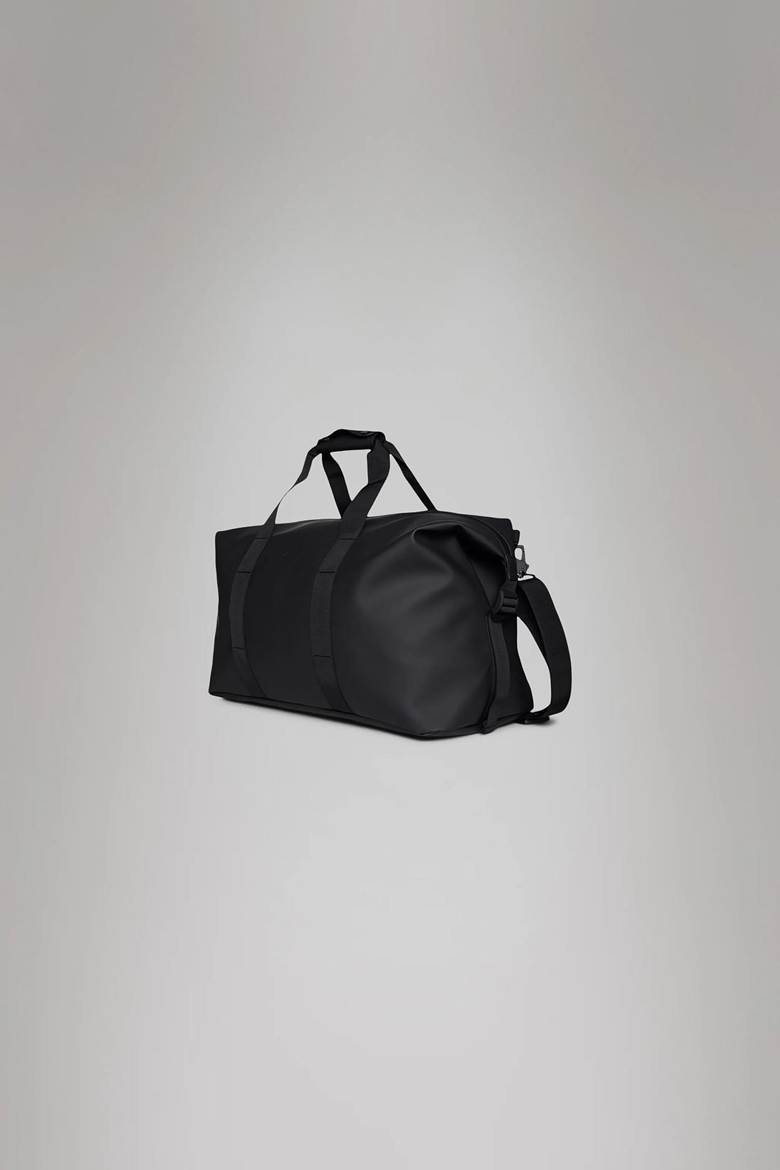 The Hilo Weekend Bag is Rains’ take on the essential travel bag, one of three sizes available. The travel favorite is clean and contemporary, and balances Rains’ waterproof fabric with signature strap and metal detailing. Unzip the full-length coated zipper to find a single, spacious compartment with room for clothing, tech, and more. Once packed, secure your belongings using the silhouette’s side compression straps. The design is finished with woven carry handles, with comfortable sleeve and attachment rings for an included detachable shoulder strap. The Hilo Weekend Bag is constructed from Rains’ signature waterproof PU fabric, designed for strength, durability, and a soft feel.