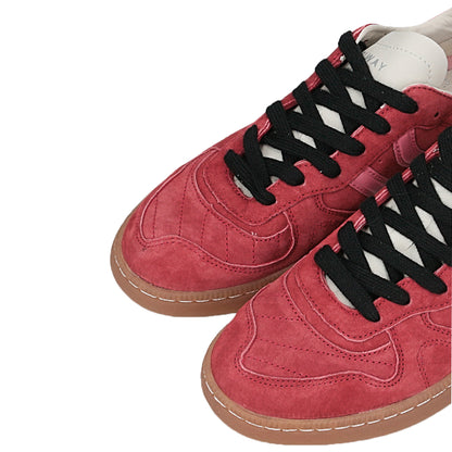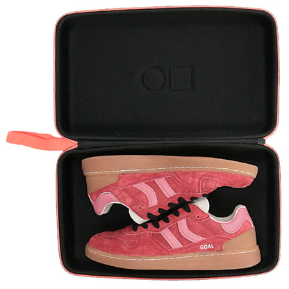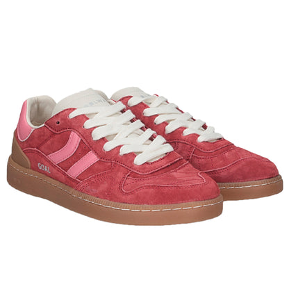 Zapatilla deportiva de serraje con detalles en contraste de color. Lengüeta de piel y preformada con un acolchado figurado. Vistas del forro en piel. Cordones planos de algodón en dos tonos intercambiables. Cuello ligeramente acolchado. La parte delantera lleva un refuerzo de pespuntes. Suela flexible de goma/caucho que aporta durabilidad y agarre. Cuenta con el nombre del modelo “GOAL” en lateral en oro viejo.
