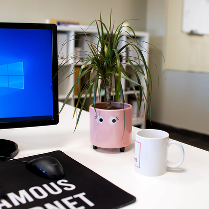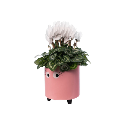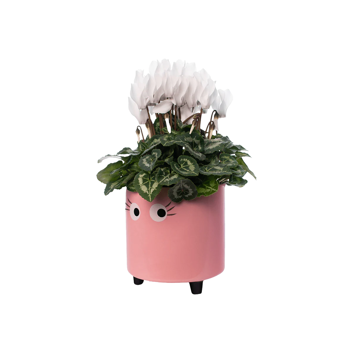 Dale un toque de diversión y delicadeza a cualquier rincón de tu hogar con este macetero rosa con ojos y pestañas. Colócalo en tu escritorio y dale vida a tu oficina, en tu sala de estar para crear un ambiente acogedor, o incluso en tu jardín para darle aún más personalidad a tus plantas.