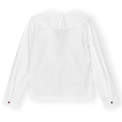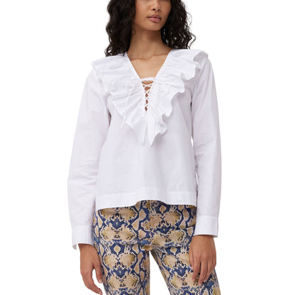 Cotton Poplin V-neck Ruffle Blouse