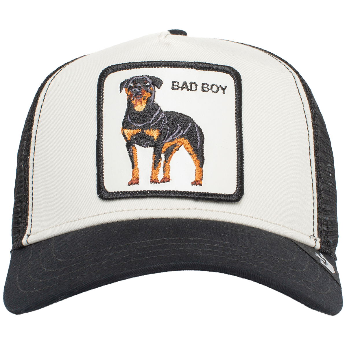 Gorra trucker de estilo urbano con un toque atrevido y moderno. El panel frontal estructurado luce un parche bordado de perro con la frase "Bad Boy", añadiendo personalidad al diseño. La parte trasera de malla proporciona ventilación y comodidad en el uso diario. Cierre ajustable para un ajuste perfecto y seguro.
