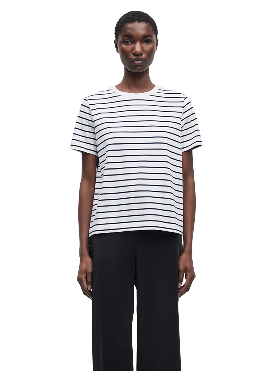 Con el mismo patrón relajado, la Camino A de Samsoe Samsoe añade el azul Salute a su jersey 100 % algodón orgánico certificado. El cuello redondo acanalado mantiene la forma lavado tras lavado, mientras la fibra natural garantiza frescura y suavidad. Perfecta para renovar tu fondo de armario con un giro de color consciente.