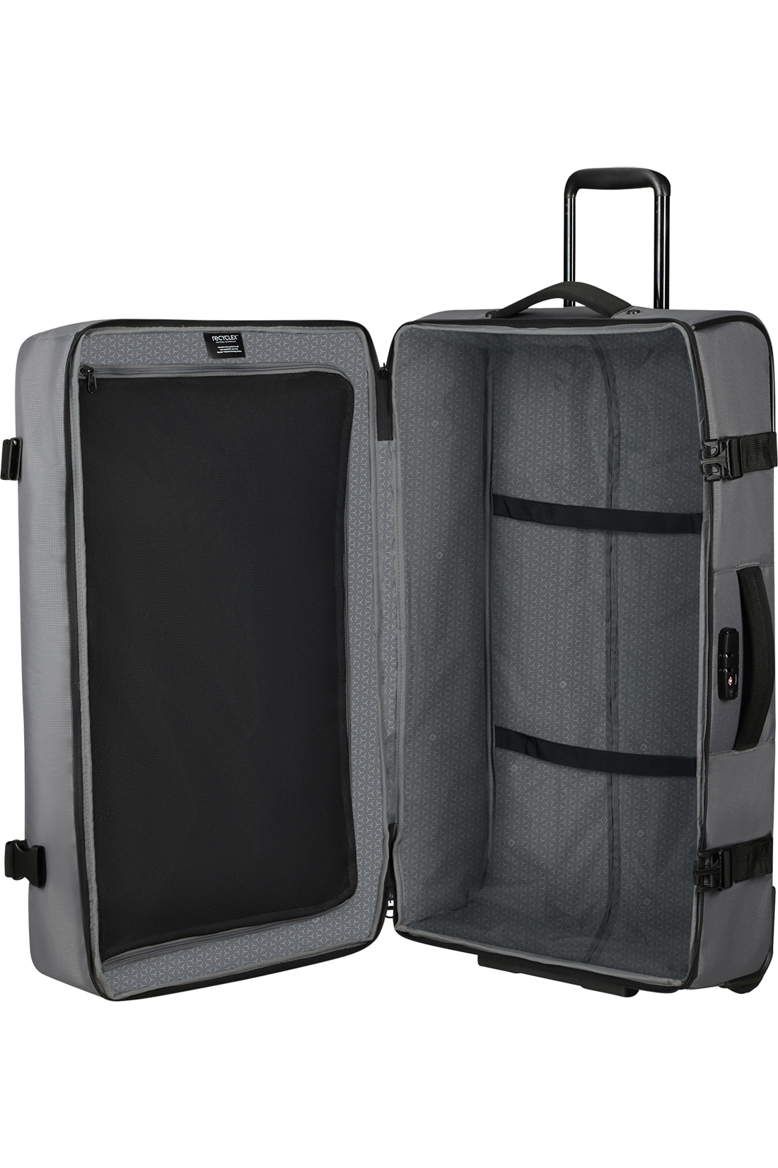 Bolsa de viaje. Saluda a Roader, la nueva colección de referencias tanto para los viajeros más activos como para los que no paran de moverse por la ciudad. Con esta colección elegante pero informal podrás viajar con estilo, guardando todas tus pertenencias de forma ordenada. Roader es tu mejor compañera tanto cuando vas a trabajar a descubrir mundo. Blanda. Material de fabricación: Pet reciclado. Dimensiones: 79 x 45 x 32 cm. Volumen: 112 L. Peso: 3,1 kg. Cierre con cerradura de combinación con función TSA. Asas superior, lateral e inferior. Tirador de doble tubo. 2 ruedas de sistema integrado. 1 bolsillo exterior delantero. Correas de compresión. Cinturón lumbar. Etiqueta de identificación. Ecológica. Equipaje de mano. Compartimento central. Garantía legal.